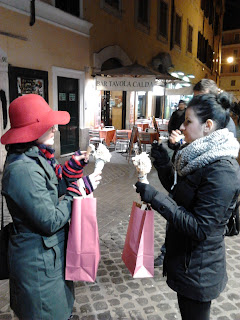 Ziua 2 – am avut pranz consistent, rataciti pe stradutele de pe langa Via Cardinale, am gasit meniuri intre 11 si 14 euro, eu am ales un meniu cu supa de legume, care arata cam ca o tocana de-a noastra, dar foarte gustoasa. Felul 2 cred ca era cu ceva carne la conserva fiindca era dubioasa la aspect, dar buna la gust. In schimb de acolo mi-am luat ciocolata made in Italy, excelenta.