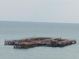 Daca cel din stanga isi spune “eco”, cel din dreapta este adevarata ferma de midii deschisa cu fonduri europene inca din 1996. Ferma pe care o si puteti vedea in zare inca de cand coborati panta cea abrupta.