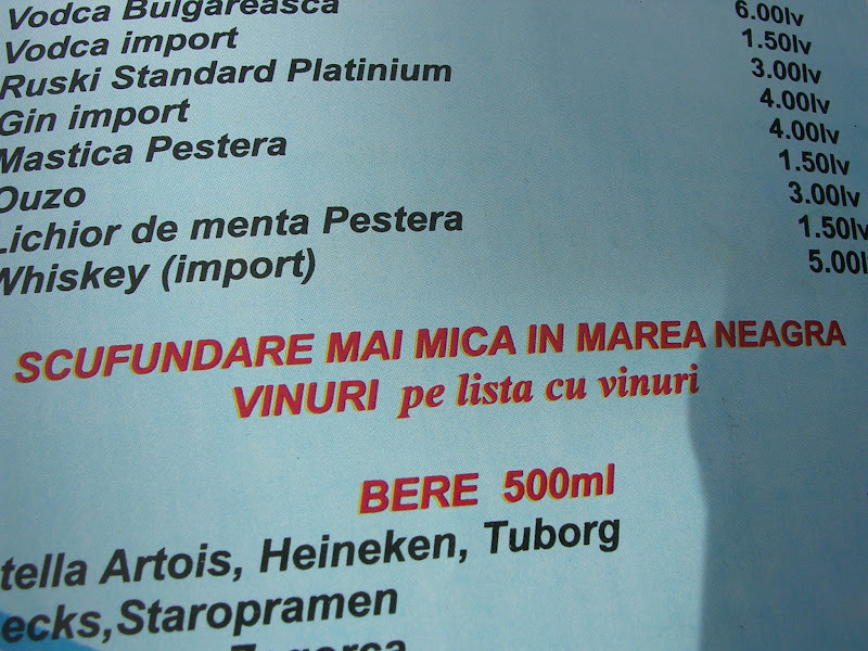 Si sa revenim la lucruri serioase 😀 ca de asta am venit aici. Meniul exista si in limba romana cu niste traduceri amuzante in unele locuri, ospatarii deja rup cateva cuvinte in limba romana si chiar daca nu va intelege comanda din meniul in limba romana isi va lua corespondentul din meniul in limba bulgara, fiindca au aceeasi asezare si aceeasi numerotare.