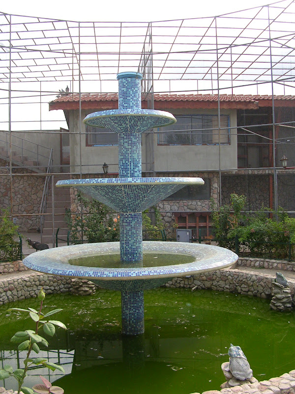 Imi place sunt mesele aerisite, nu dai cu scaunul in vecinul doar fiindca vrei sa mai repozitionezi scaunul. Exista alei multe, petice de spatiu verde sa bantuie copiii, un mic helesteu unde se plimba 2 lebede negre, o gasca si o rata, desi rata e sigur cu complexe de inferioritate pe langa celelate surate ale ei de pe apa, chiar si gasca este fugarita de lebede atunci cand vine vorba de mancat de la oameni. Plus gaini, porumbei, 2 struti, papagali….si multe, multe flori.